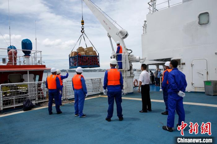 远望5号船外港锚地作业,实现“零接触”补充物资 王璐瑶 摄