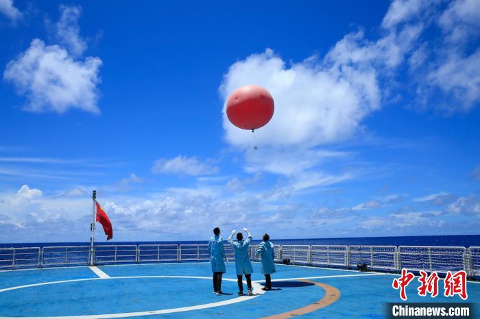 远望5号船工作人员施放信标球 安善福 摄