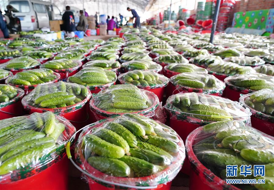 5月12日,滦州市小马庄镇郎红棚菜专业合作社的社员将刚采摘的黄瓜装箱打包。 近年来,河北省滦州市通过实施“兴菜富农”战略,引导、扶持发展设施蔬菜种植,让越来越多的农民依靠“菜篮子”鼓起“钱袋子”。据介绍,目前该市蔬菜种植面积达到10万余亩。 新华社记者 杨世尧 摄