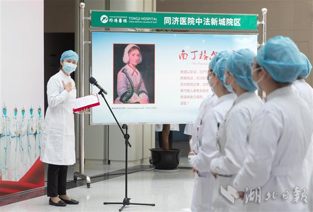 5月12日,护士代表们重温南丁格尔誓词。