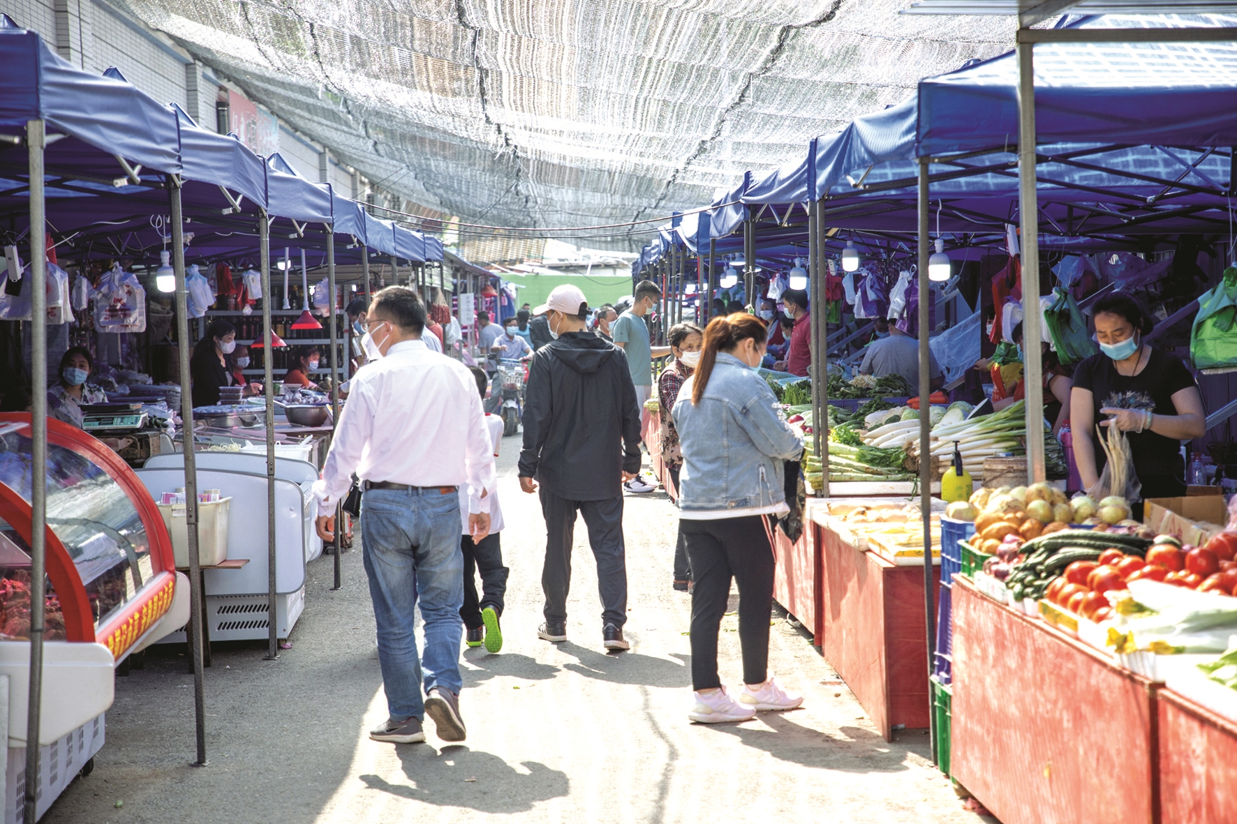 “原有的太山市场因升级改造还处于关闭状态。考虑到居民有购菜的需求,原有的市场摊主也需要开张营业。”江堤街办事处相关负责人介绍,4月下旬,街道与市场经营主体达成共识,决定开辟太山临时市场,可为附近十余个小区万余户近5万居民提供便民服务。