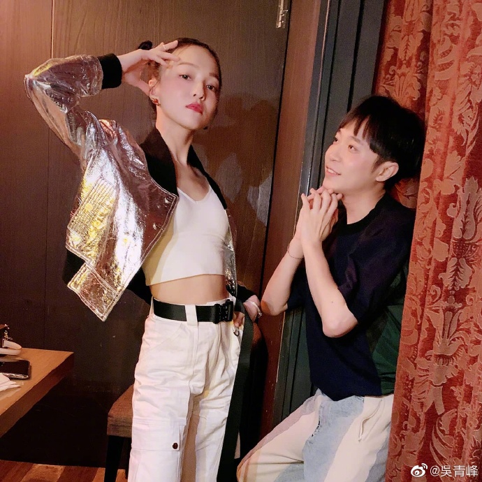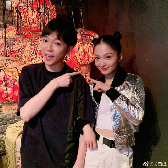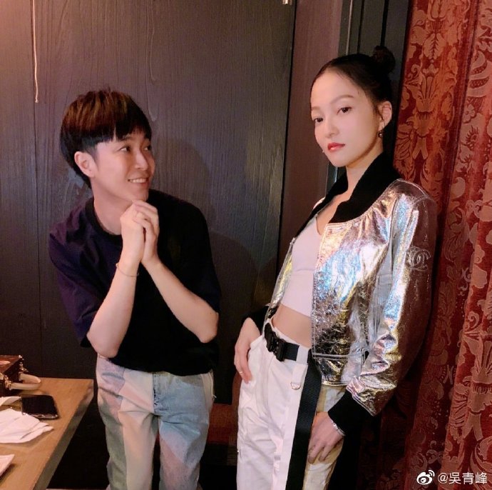 5月18日晚,吴青峰在微博晒出与好友张韶涵聚会的合照,无情吐槽其出门吃顿饭也要穿得很时尚。照片中,张韶涵身穿银色外套绑哪吒头,吴青峰则穿简单的黑色T恤。吴青峰装成很崇拜张韶涵的样子,两人互动十分有趣。