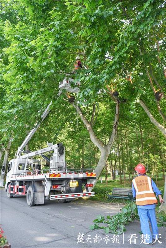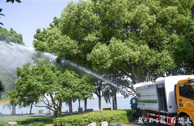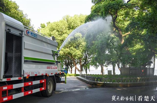 据了解,这台多功能洒水车施药作业已经持续了一周多,预计未来两三天即可结束对大树的喷药工作。此外,景区目前也在对树木进行修剪。(楚天都市报记者黄士峰 摄影报道)