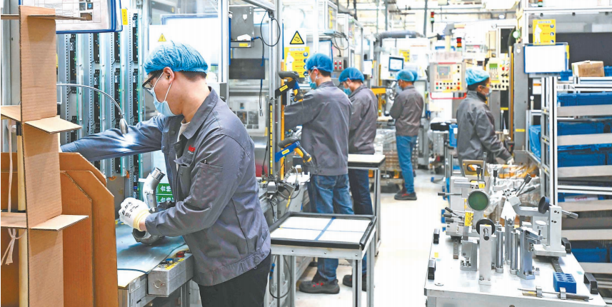 霍尼韦尔涡轮增压技术(武汉)有限公司,工人在生产线上紧张有序工作。长江日报记者高勇 摄