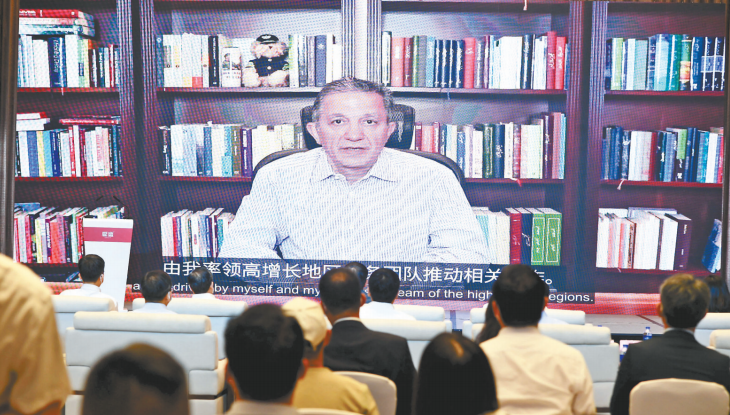 19日,霍尼韦尔公司新兴市场总部暨创新中心揭牌仪式上,霍尼韦尔全球高增长地区总裁沈达理(Shane Tedjarati)通过远程视频表示。