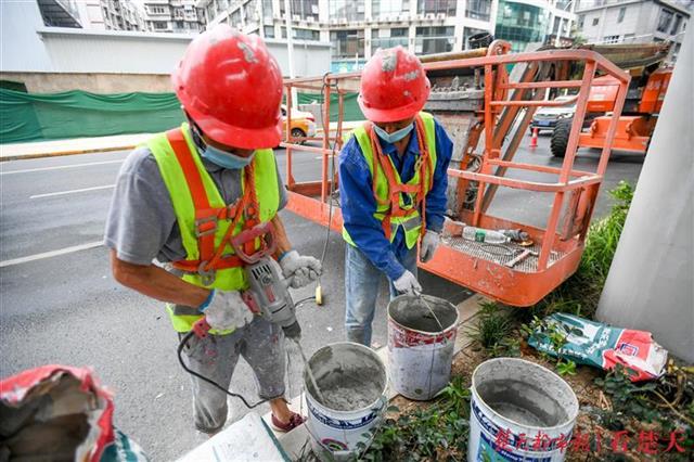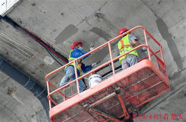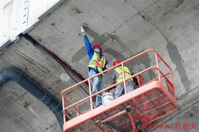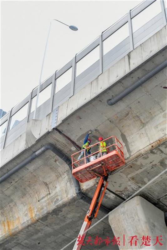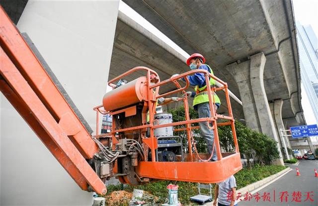 来自湖南的刘师傅说,自己已经在此工作7天,目前是给桥底刮腻子,然后再上漆。疫情期间,高架桥也要保持干净整洁,让市民看着舒心养眼。(楚天都市报记者邹斌 摄影报道)