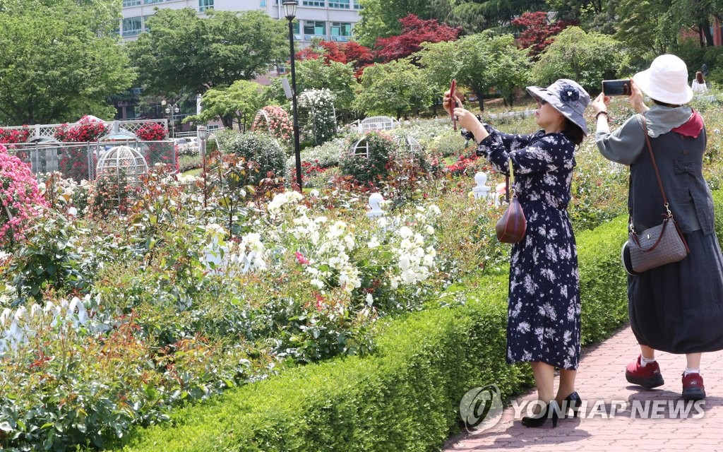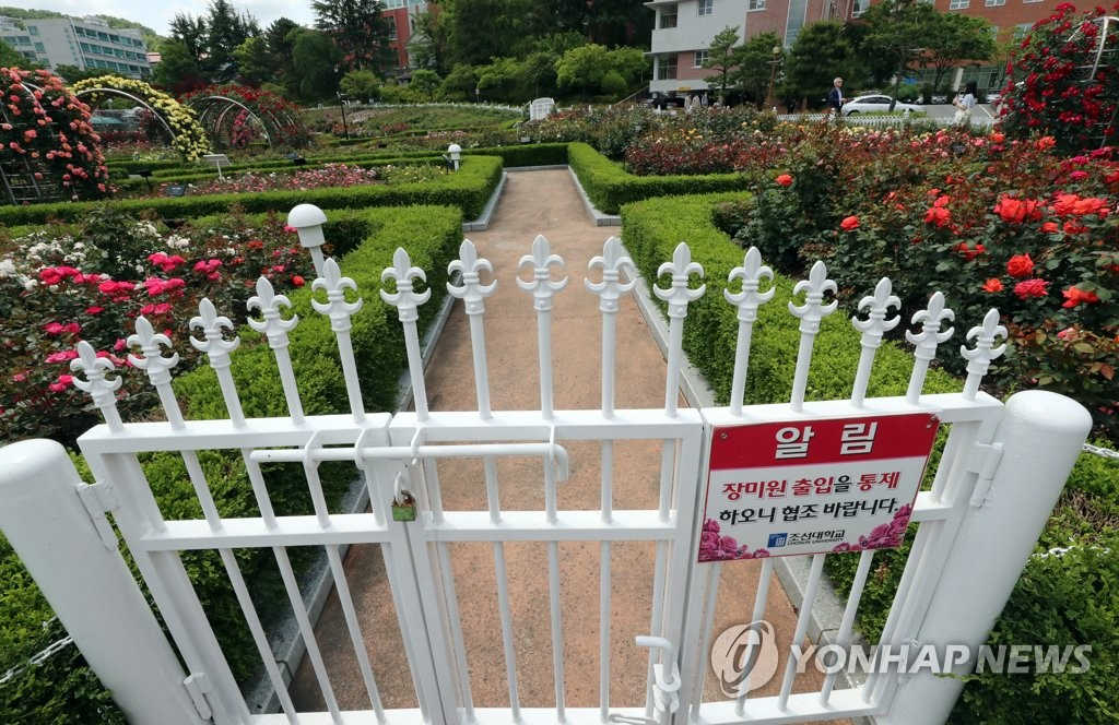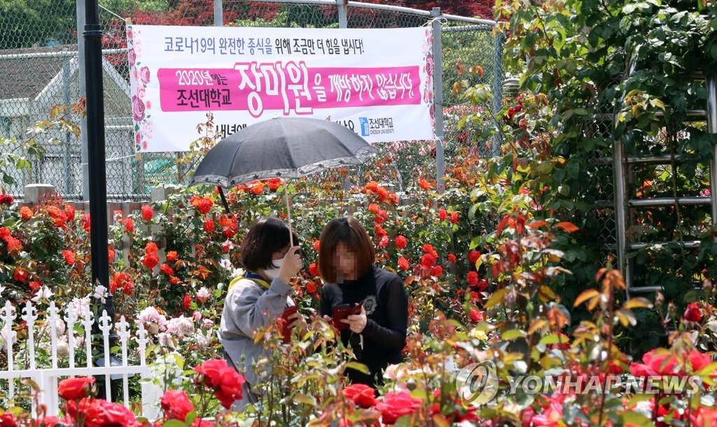 人民网讯 据韩联社21日报道,受疫情影响,今年光州东区某大学校内玫瑰园不对外开放,但已制作好视频发布在网络上供大家“云赏花”。(编译:实习生王晨阳 图源:韩联社 )