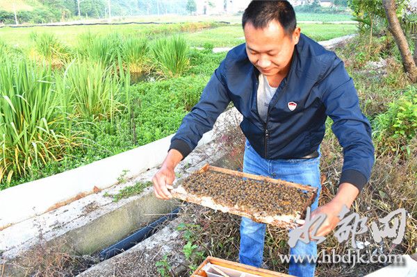 陈春龙家依山傍水,前面是龙虾塘,他又把目光放到了屋旁和屋后的山坡,每逢春夏时节,山上野花烂漫、野草繁茂,山花从三月一直开到十月,于是,他又开始琢磨起了养蜜蜂和养牛羊,一开始不懂养蜂技术,蜂箱刚放置没多久,蜜蜂就飞得无影无踪,可把他心疼坏了,他便走出去,到处“拜师学艺”,到相邻村里养蜂的村民家里学习,积极参加镇上和村里组织的技能培训。