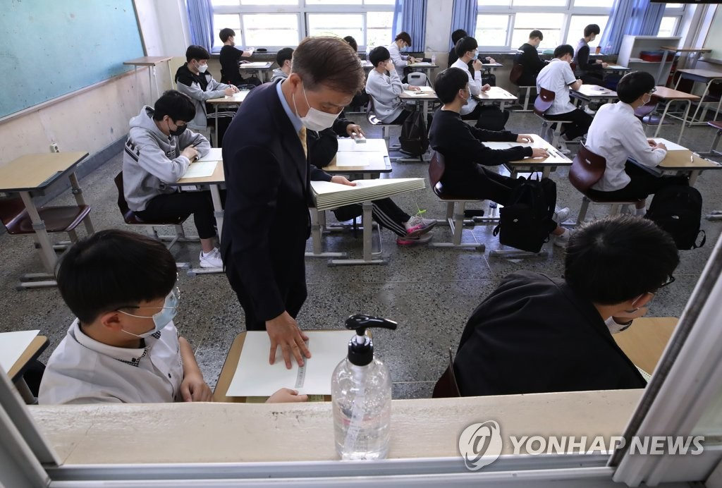 人民网讯 据韩联社报道,21日上午,韩国高三年级学生参加了 “全国联合学历评价考试”,这也是今年的首次高考模拟测试。受新冠肺炎疫情影响,此次考试并非强制,相关学校自行选择参加。