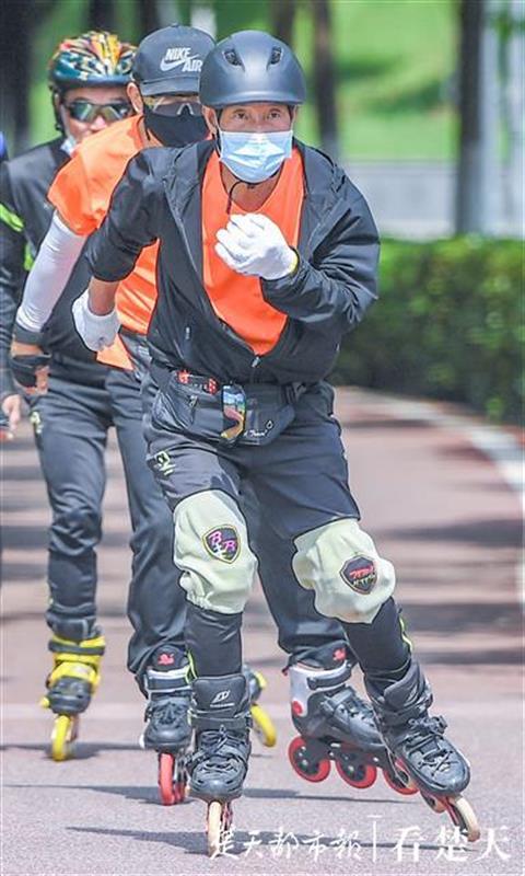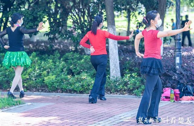 5月23日,周六的武汉天气晴好。当天上午,记者在汉江江滩硚口段看到,中老年市民晨练方式五花八门:他们有的在树林里练起杨氏太极,有的在亭子边上打起陈氏太极,有的在广场上放飞盘鹰,有的在空地上跳起广场舞,有的甚至学起小朋友和年轻人玩起轮滑。
