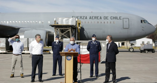 23日当天,智利空军从中国运回了包括11台呼吸机在内的15吨抗疫物资,这些物资将在第一时间被分配到各大医院中投入使用。
