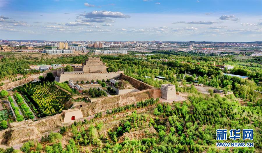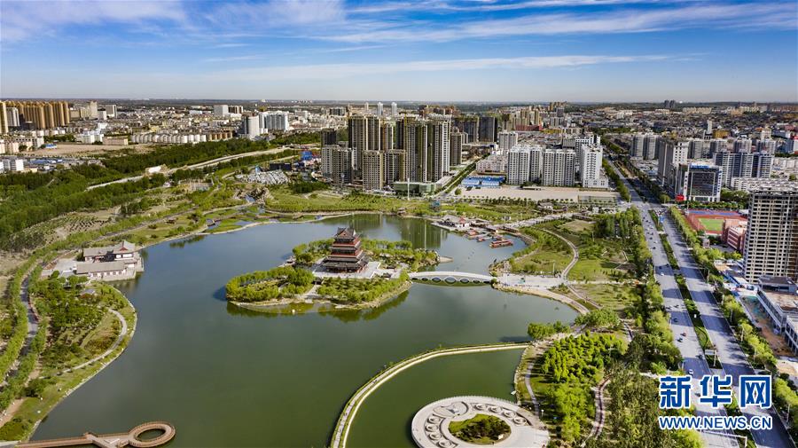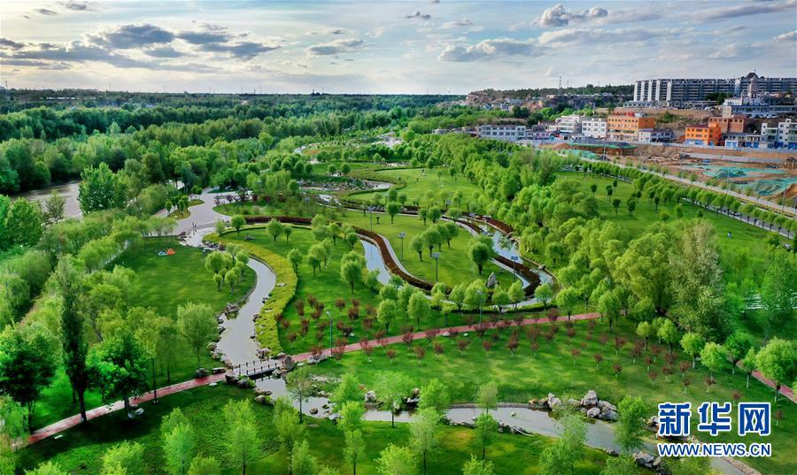 5月24日拍摄的榆林市河滨公园(无人机照片)。 新华社记者 陶明 摄