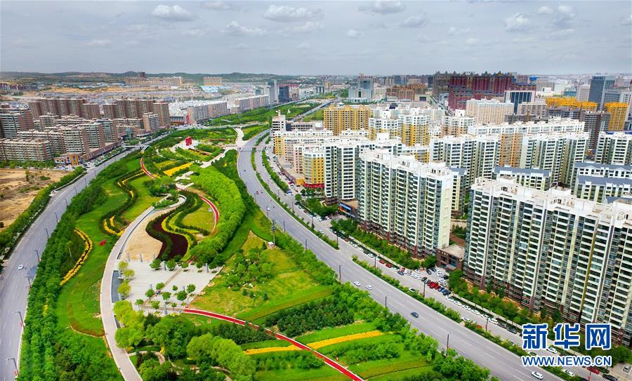 5月25日拍摄的榆林市高新区绿化走廊(无人机照片)。 新华社记者 陶明 摄