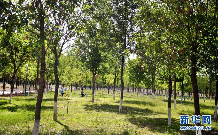 5月24日,市民在榆林市城市公园休闲。 新华社记者 陶明 摄
