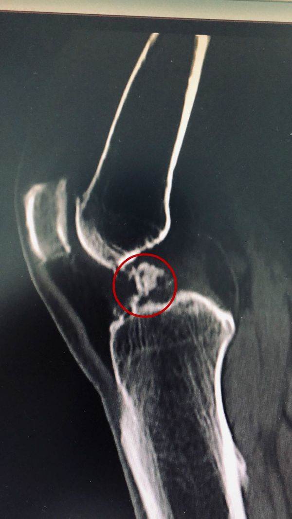 经过一段时间的住院治疗,王女士膝关节疼痛得到缓解,但由于“小石子”仍紧紧卡压在股骨髁间窝,根本问题并没有解决。针对王女士的情况,骨伤二科医师团队经过反复研究评估,制定周密的手术康复计划,决定在局麻状态下为王女士进行手术治疗,取出游离体。