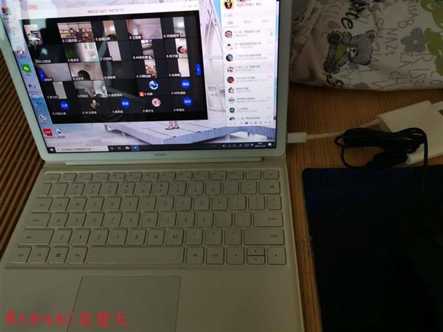 “请大家把试卷拿出来,开启摄像头,听不清楚我的声音一定要举手告诉我……”29日上午9:40,穿着红色礼服、化好妆的肖珊准时和学生们在空中课堂见面。当打开摄像头的一瞬间,屏幕另一头的同学们发现今天的数学老师和往日略有不同。