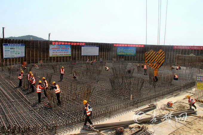 丹江口水库特大桥南北两岸共计桩基52根。5月1日,随着该特大桥南岸最后一根桩基的成功浇筑,南岸主墩的26根桩基施工全部顺利完成,标志着南岸的施工由地下部分转为地面部分,实现了重要的工序转换。5月16日,丹江口水库特大桥南岸正式进入承台施工阶段,30余名工人热火朝天的进行钢筋绑扎工作,预计6月初完成丹江口水库特大桥南岸主墩承台的浇筑工作。