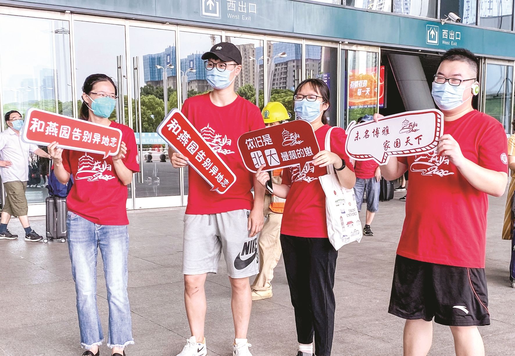 6月6日,湖北人进京限制解除,铁路部门逐步恢复湖北始发进京旅客列车运行。当日湖北籍大学生返京前在武汉火车站合影。长江日报记者刘斌 摄