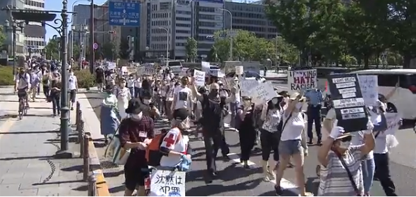 据日本朝日放送电视台(ABC)等媒体7日报道,当天,来自日本、美国等多个国家的示威者从大阪中之岛公园出发,大声呼喊“BLACK LIVES MATTER!(黑人生命很重要)”的口号,在街道上整齐行进。当路过美国总领馆附近时,人们一边高喊着“反对种族歧视”,一边进行着示威游行。