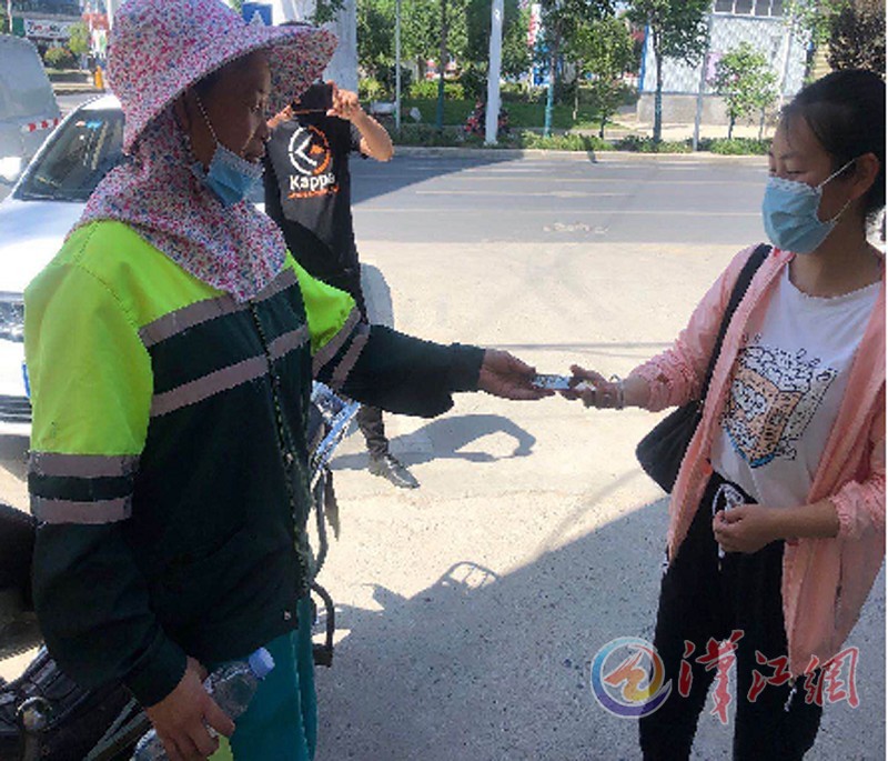 6月1日上午11时,襄州区环境卫生管理所清扫一队环卫工人李明贵,在春园东路保洁时捡到一部手机。李明贵担心失主丢了手机着急,就在原地一边保洁一边等候失主。在炎热的天气里,李明贵来来回回跑了20多趟,都没有等到失主。经过多方寻找,当日下午3时,李明贵将手机归还失主,失主连声称谢。