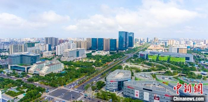 资料图为航拍海口国兴大道CBD。中新社记者 骆云飞 摄