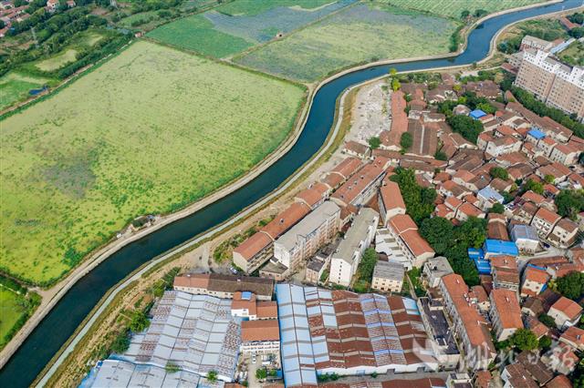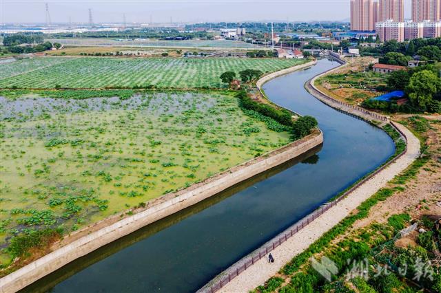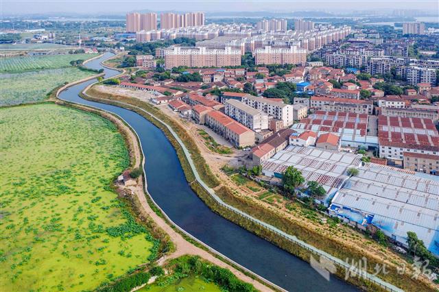 6月12日,俯瞰青山白玉山明渠,水清岸绿景美。武汉市青山区白玉山明渠全长6.2公里,以前周边2万居民的生活污水未经任何处理,经该明渠,通过北湖直排长江。2017年中央环保督察反馈意见后,青山区政府于当年底启动白玉山明渠排水专项整治:将8米至12米的明渠底,拓宽至18米至24米,并加修护坡护栏、亲水步道和绿化道;新建污水处理站,对沿线生活污水排口进行截污,共建成污水收集管网3.7公里,将居民生活污水接入新建的污水处理站处理后排出,现在的白玉山明渠水清了。(湖北日报全媒记者 梅涛 摄)