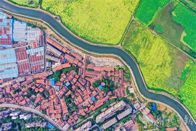 6月12日,俯瞰青山白玉山明渠,水清岸绿景美。