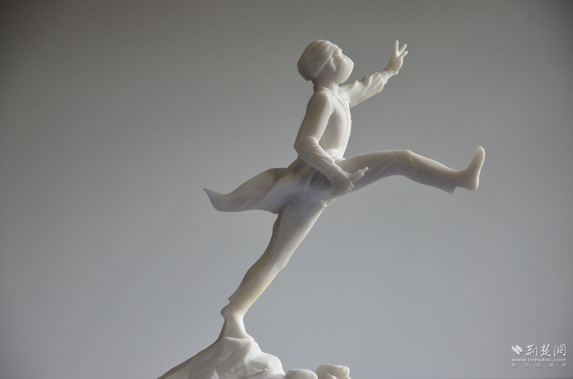 展出石雕作品2件,名为《逆行者》和《无声战疫》,作者是汉派石雕和楚韵铜雕非遗代表性传承人安力。疫情暴发后,安力手执雕塑刀,创作出一批以抗击疫情为主题的雕塑作品,和全国人民一起战“疫”。