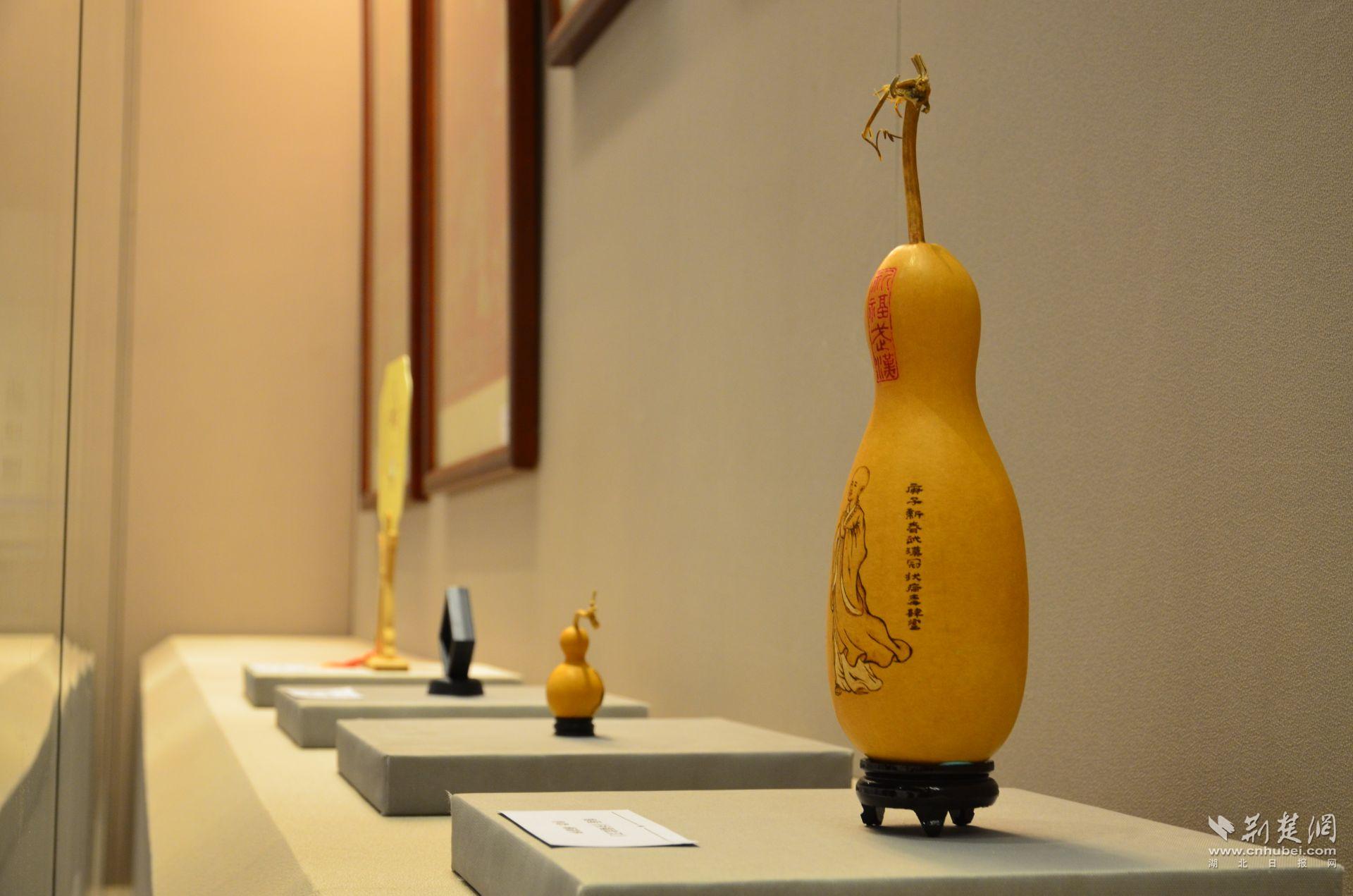 展出烙画作品7幅,创作者是非物质文化遗产武汉烙画传承人蒋谌华。疫情期间,蒋谌华制作了60余个葫芦烙画送给一线的医生、护士、街道转运病人的司机、下沉工作人员和社区志愿者,祈愿保佑他们驱除病魔、平安吉祥。