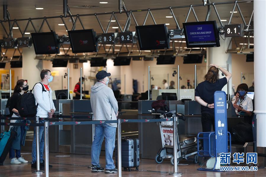 6月15日,旅客在比利时布鲁塞尔机场出发大厅办理登机手续。 比利时15日起向欧盟和申根区国家以及英国恢复开放边境。 新华社记者郑焕松摄