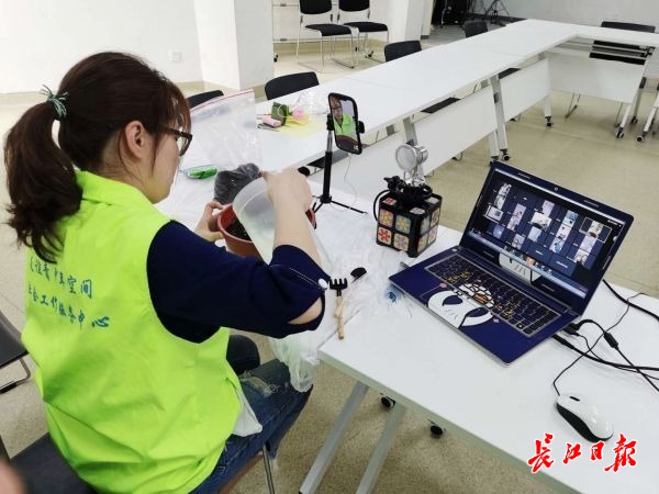 社工为花楼水塔街华中社区的居民开展线上园艺疗愈活动。