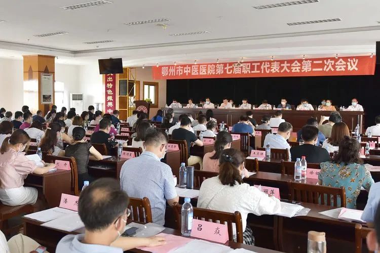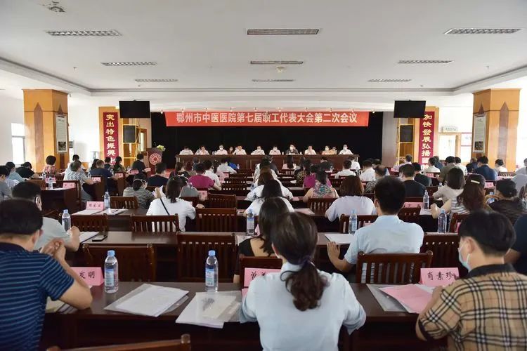 正值初夏时节,骄阳似火,万木葱翠,万物生长,武汉保卫战、湖北保卫战已取得决定性成果,全国“两会”刚刚胜利闭幕,鄂州市中医医院于2020年6月12日下午在门诊八楼会议室隆重召开第七届二次职工代表大会。参加会议的有正式代表97人,5名特邀代表和24名列席代表。院领导班子成员出席了会议,会议由工会主席王先荣主持。