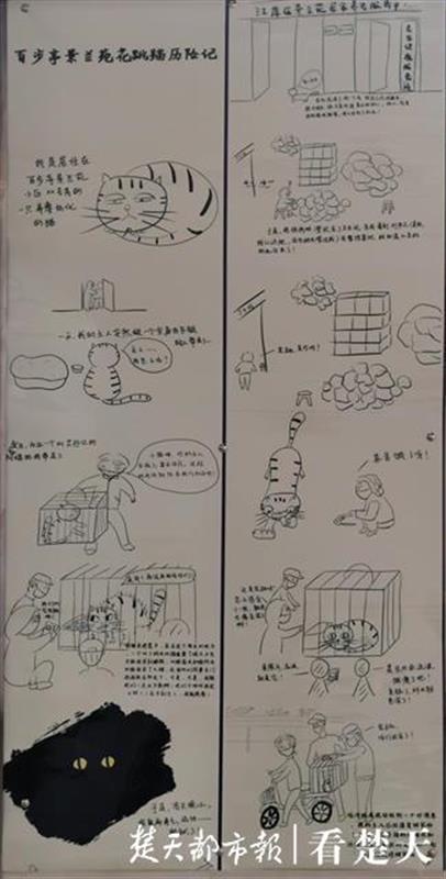 “你的主人生病了,要去治疗,这段时间你就住在我们社区吧!”漫画《百步亭景兰苑花跳猫历险记》讲述了一个疫情期间发生的真实故事:一只名叫“花跳”的小花猫由于主人确诊住院,被景兰苑工作人员带到居委会精心照料。一次“出走”后,流浪了近一个月的小猫又重回社区,社区书记和下沉干部一同将小猫送回了家。