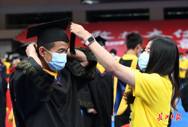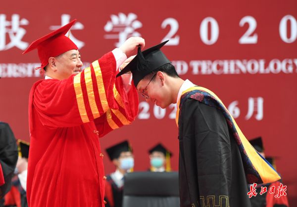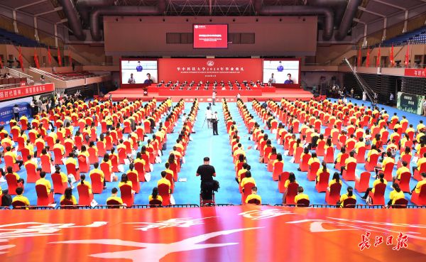 21日,华中科技大学2020年毕业典礼在光谷体育馆举行。