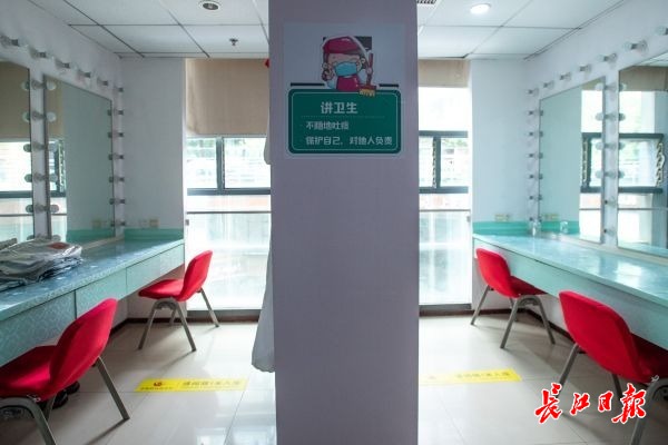 长江网6月24日讯(记者万旭明 通讯员蒋艳丽)26日上午10时,武汉人民艺术剧院将在中南剧场上演儿童剧《玫瑰仙子》,拉开武汉7家城市剧场恢复开放的大幕。距“开锣”仅有两天,长江网记者实地探访中南剧场发现,为与观众再次相见,剧场已做了各项准备。届时,观众间隔入座、演员间隔化妆,“保持距离”将成为恢复开放后的剧场关键词。