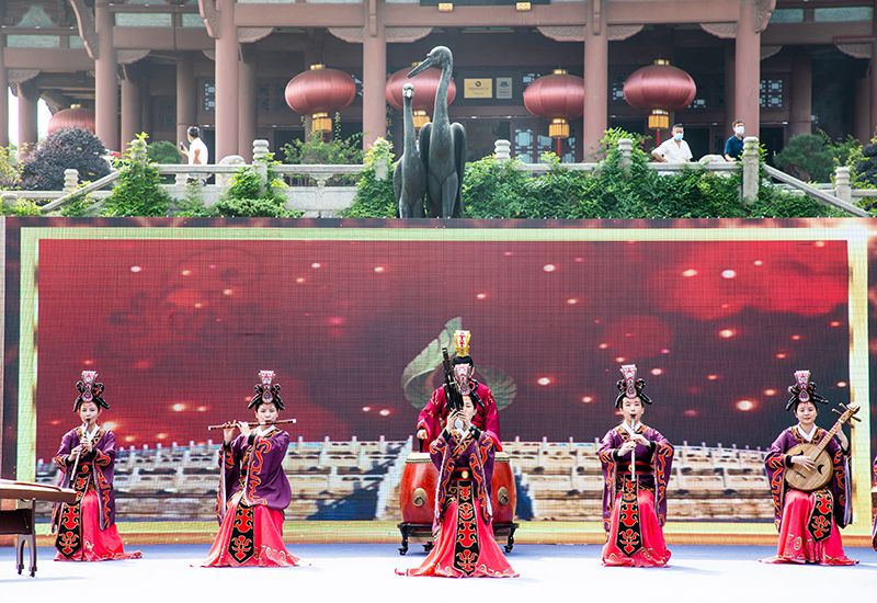作为本次活动的主会场,武汉黄鹤楼公园准备了丰富多彩的文艺表演。“庚子年·端午祭”编钟囯乐专场音乐会,古老的编钟奏响中华文明和谐之音。来自湖北省歌舞剧院等院团的艺术家们,亦或是丝竹琴音,亦或是曼妙舞姿,讴歌人类战胜疫情的决心和勇气,给予世界人民抗疫信心。