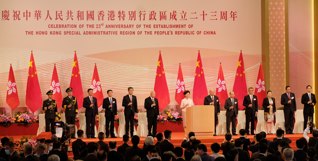 7月1日,为庆祝香港特别行政区成立23周年,香港特区政府举行升旗仪式及庆祝酒会。