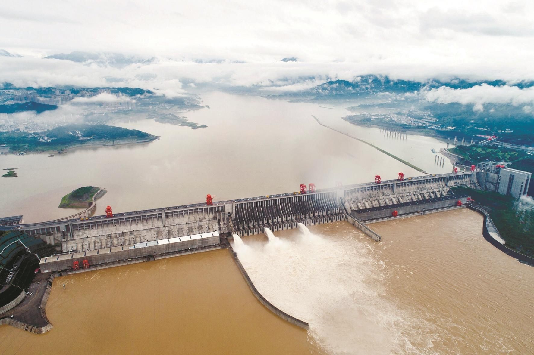 7月2日,长江三峡枢纽开启泄洪深孔泄洪 新华社发