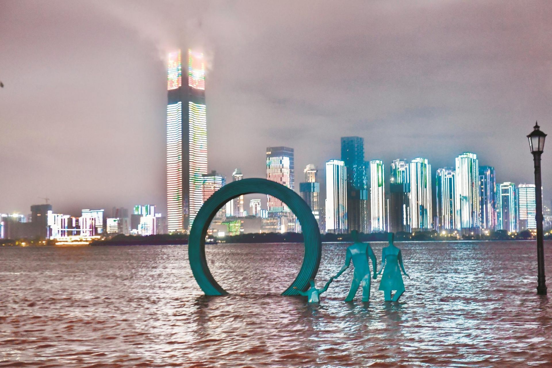 昨晚10时,长江汉口站水位已达25.60米,汉口江滩第二级亲水平台已没入水中。 楚天都市报记者李辉摄