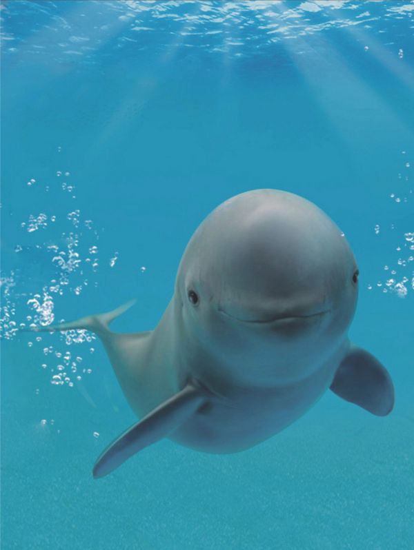 我有江豚家族的标准长相:圆圆的和尚头、迷人的小眼睛、流线型的身体、总是微笑上扬的嘴巴,所以人们也叫我们“微笑天使”!