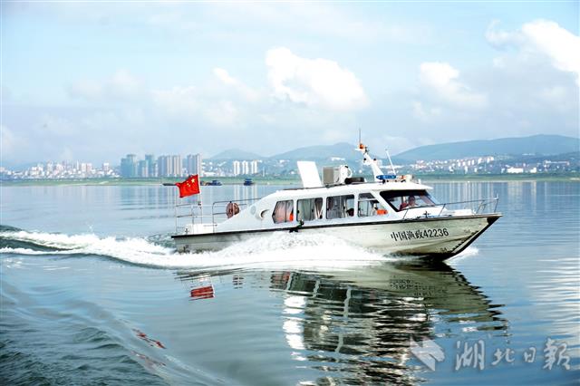 连日来,十堰市郧阳区渔政执法船正在汉江上巡逻。6月26日至7月1日,十堰市郧阳区开展长江大保护禁渔禁钓行动,海事、渔政、公安、城管等部门组成40多人的联合执法队,在6天的连续作战中,共在辖区汉江段查处扣押筏钓房17座、筏钓平台23座、三无船舶11艘、库汊内偷养网箱3个。目前己拆除三无船舶3艘、拆除筏钓房6座、拆除筏钓平台11座,所有扣压取缔船正在逐步销毁,以保护南水北调中线工程水源地生态环境和鱼类资源。(视界网 周家山 摄)
