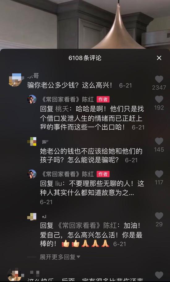 网易娱乐7月7日报道 《常回家看看》的原唱陈红近年很少在舞台上亮相,不过她在短视频平台却十分活跃。近日,陈红拍摄了一段在家做饭的视频,她的豪宅也随之曝光,装修十分豪华。有网友质疑其“骗前夫钱”,陈红回怼:“不要理那些无聊的人!这种人其实什么都知道故意为之。”