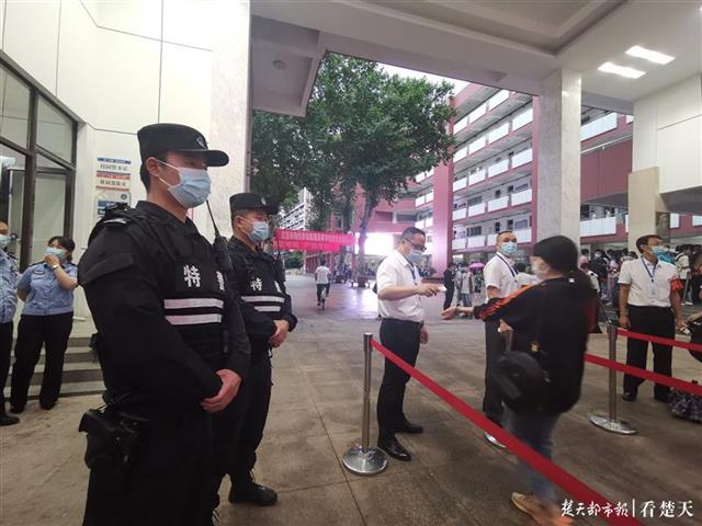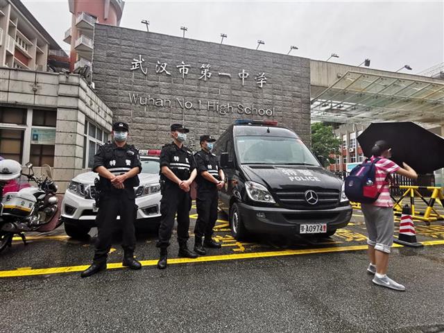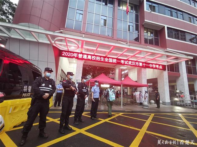 武汉特警介绍,今晨,驻各区大队特警重点支援中心城区35个考点,加强治安巡逻,接受考生及家长求助,随时应对突发事件,确保“万无一失”。