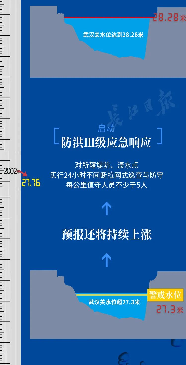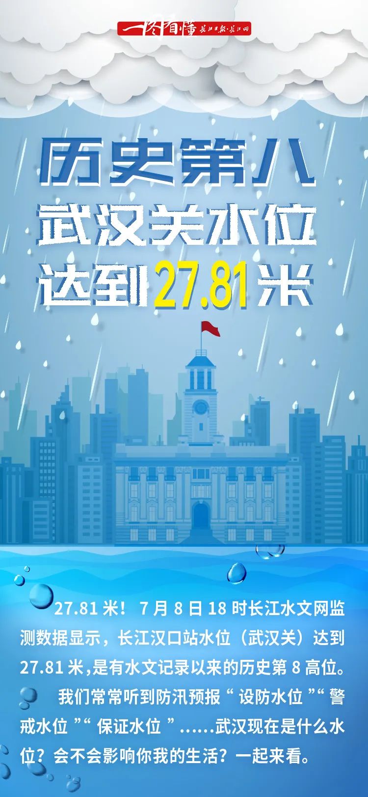 目前,27.81米的长江汉口站水位,超过1995年7月9日的27.79米,排至历史第8高位。
