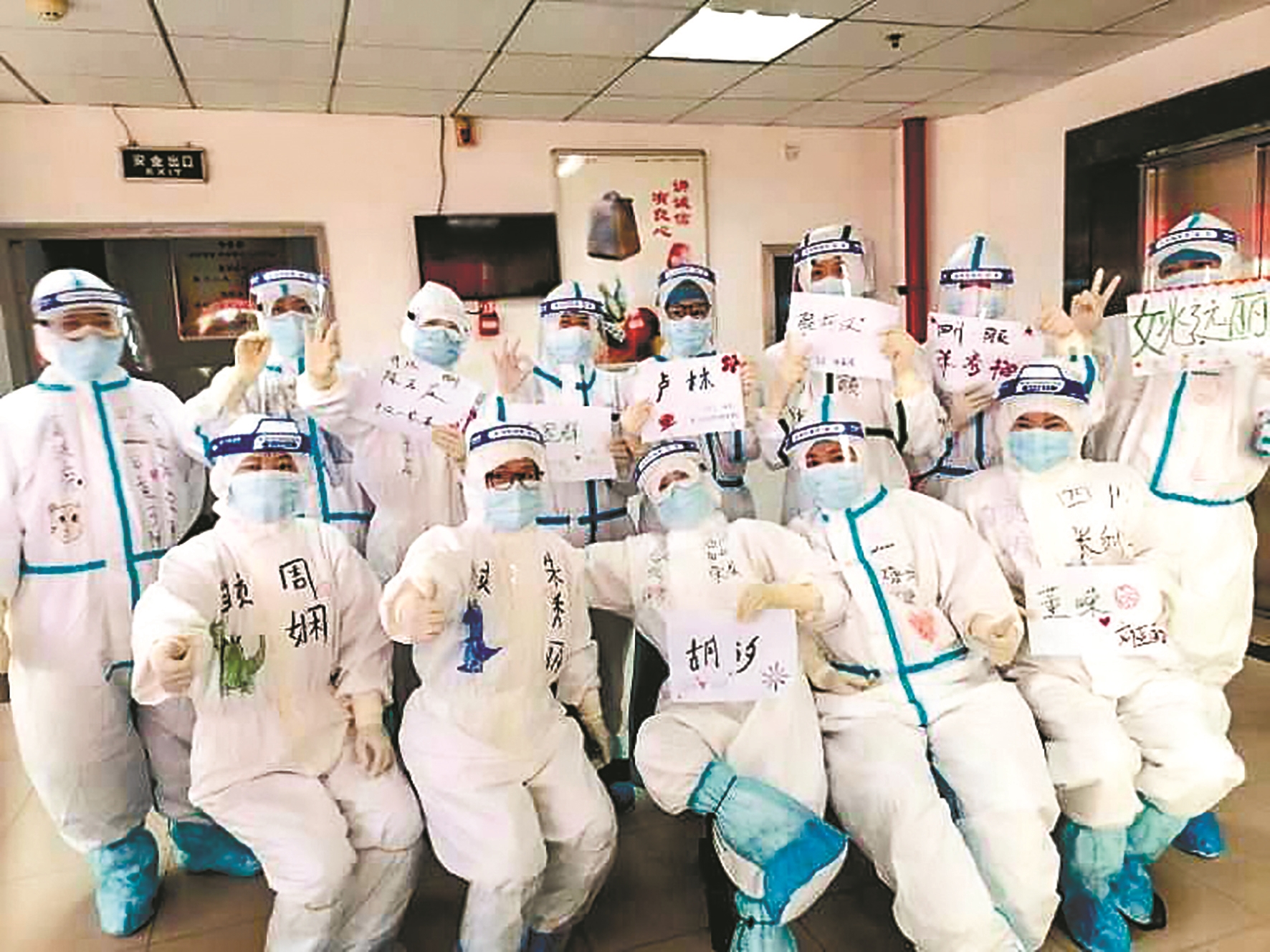 3月19日,胡汐驰援的武汉市红十字会医院彻底清空了。下午,驰援的队伍拍下合影照,胡汐脸上绽放出灿烂的笑容。