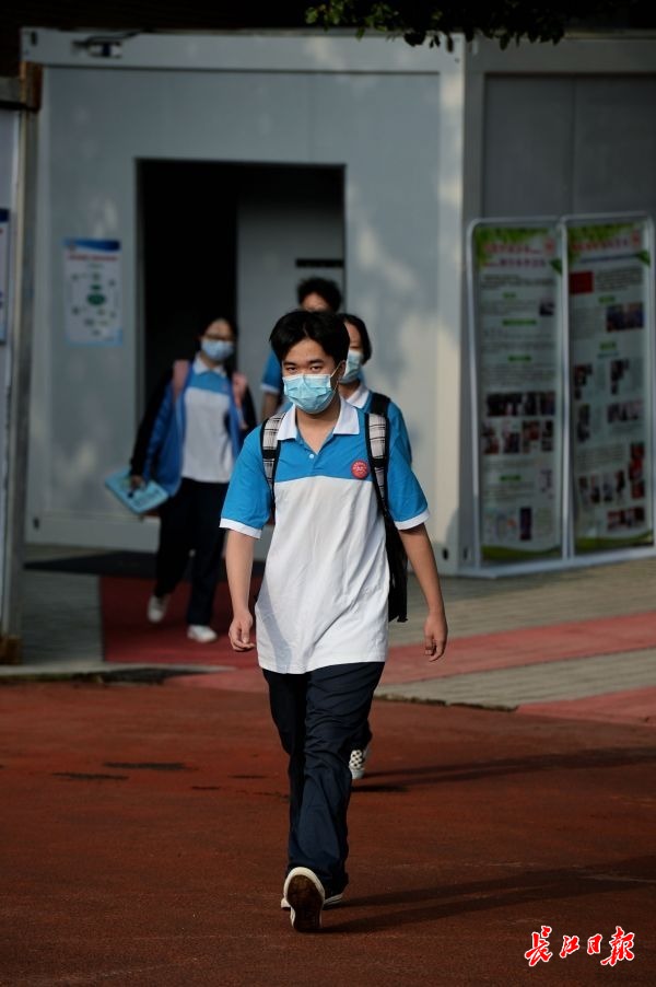 长江网7月10日讯7月10日,武汉市高一高二正式复课。武汉市弘桥中学,学生们穿着校服,戴着口罩,回到阔别已久的校园,大步走向教室。记者胡冬冬摄影报道