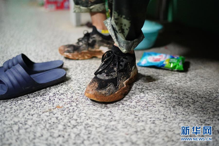工作结束后,李群群的鞋上沾满泥土(7月10日摄)。 新华社记者 周密 摄