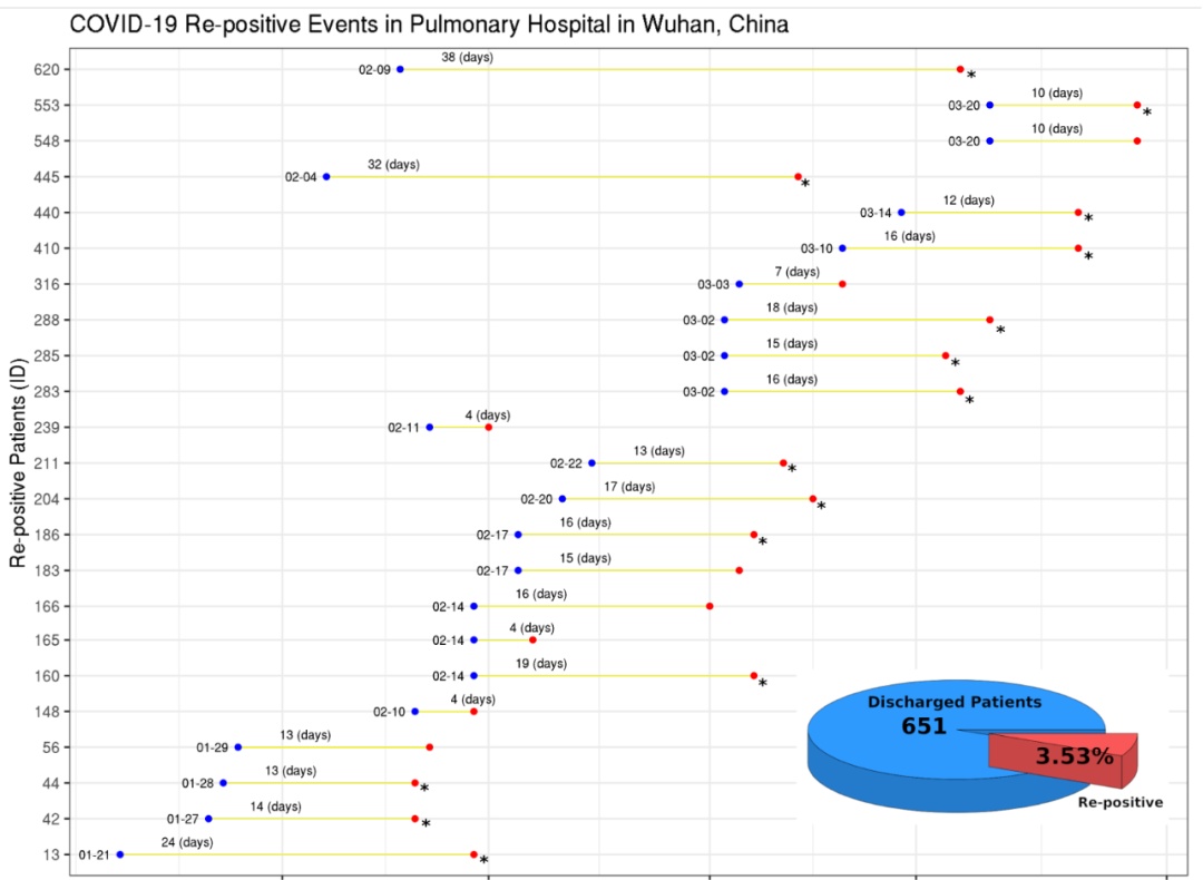 这项临床研究由华中科技大学附属同济医院和武汉市肺科医院合作开展,具体由同济医院梅齐副主任医师和肺科医院李铭主任实施。研究人员对今年1月11日~4月1日之间,在武汉肺科医院出院的651例新冠肺炎患者进行了随访。关于新冠肺炎患者复阳的各种争论,终于有了权威性的答案。