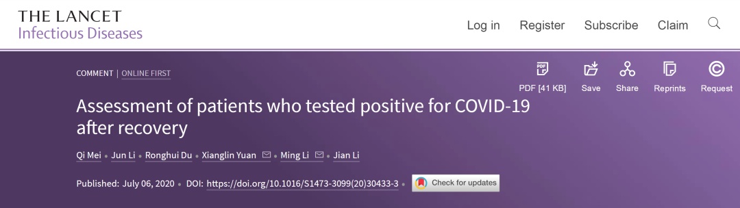 由华中科技大学附属同济医院袁响林教授领导的研究团队,对新冠肺炎患者复阳等情况的研究成果,近日在线发表于顶级医学期刊《柳叶刀 · 感染病》(Lancet Infect Dis)杂志上(IF=24)[1],并迅速被covidreference评选为七月份全球新冠文章Top 10 [2],引发新浪网等媒体第一时间关注[3]。