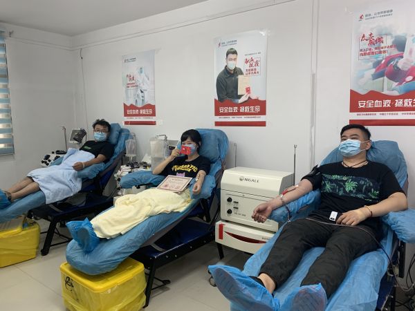 向向和同伴一起捐献血浆。武汉血液中心供图